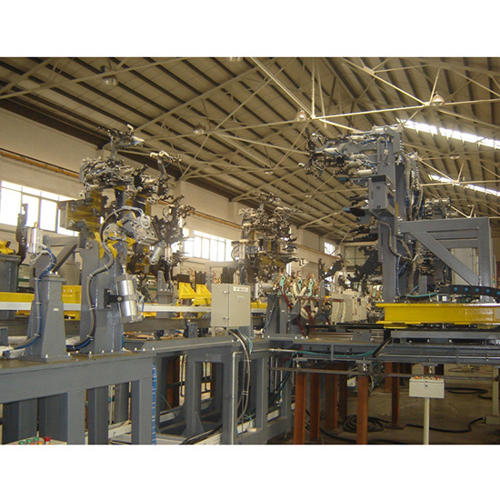 柔性主线生产线,可实现多种车型柔性切换生产。生产线以柔性总拼工位为核心,运用高速滚床输送系统、往复输送系统及工业机器人系统组件而成。完成对车身地板、侧围、顶盖等总成的拼装定位焊接工作。